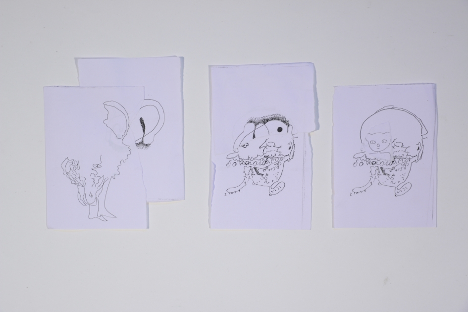 These collage/drawings are the development of "The Little Book of Sorrow". They start to form new stories and relationships that will eventually become "The Transformation of Sorrow" and "The Little Book of Love and Cake" click on the image to show the next slide.